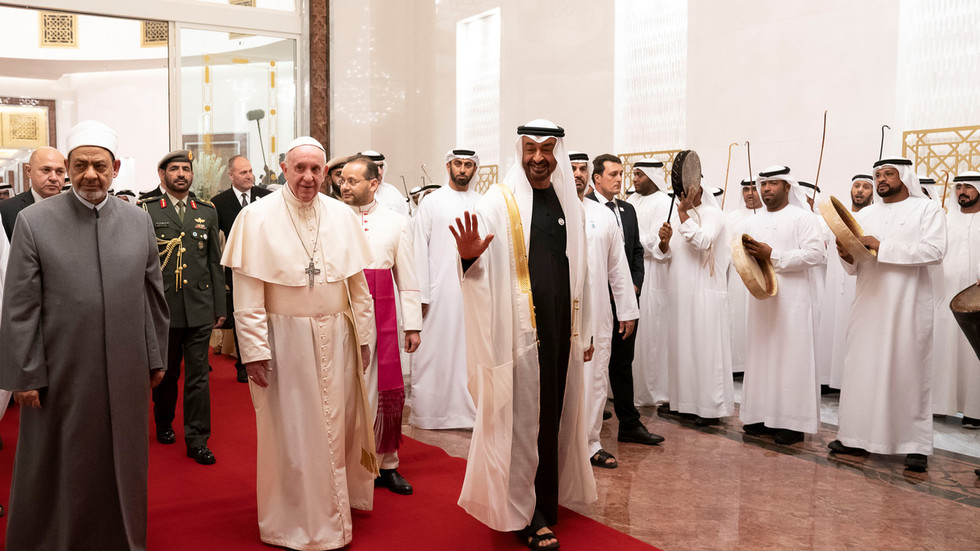 Pope Francis became the first pontiff to set foot on the Arabian Peninsula on Monday, as he received a pompous welcome in the United Arab Emirates, just after he slammed the bloody Yemen war they help to spearhead.